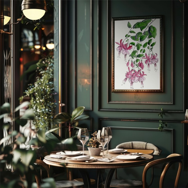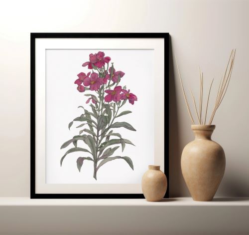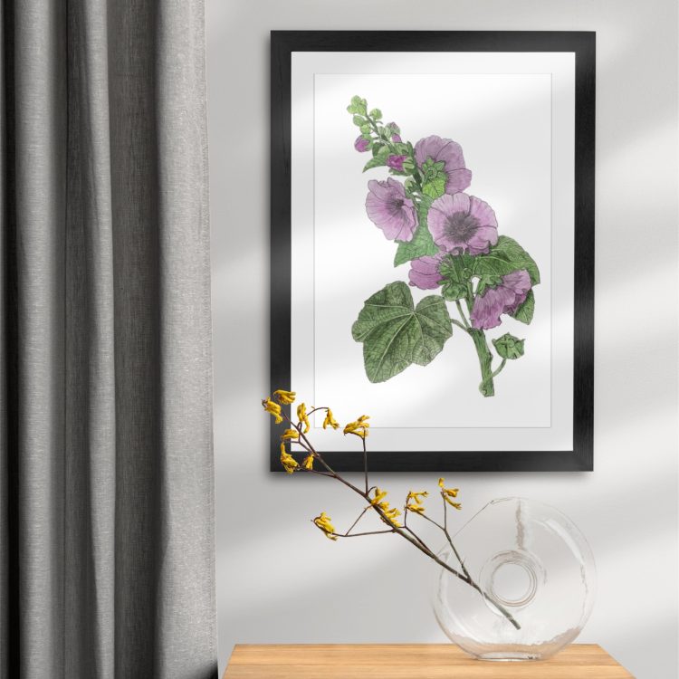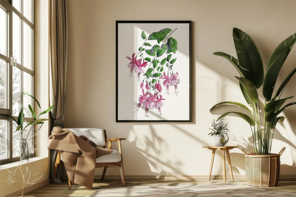 This is my latest watercolor that I’ve finished. It has lovely magenta flowers and multi green leaves. I love this color in a black frame but would adjust to other colors as well.