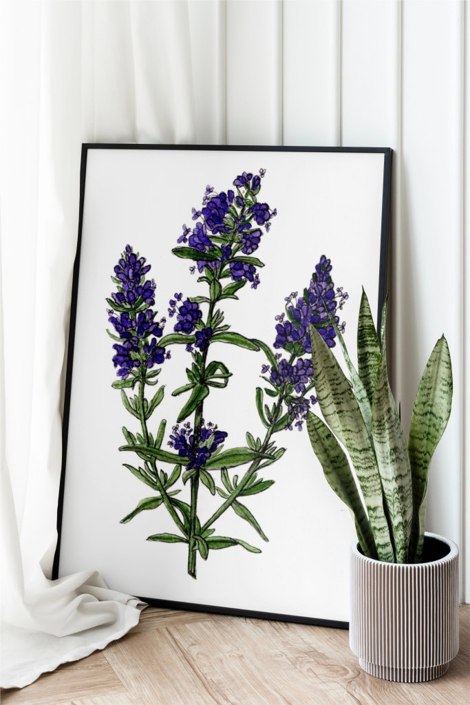 My Hyssop watercolor is a favorite of my customers. Must be the vibrate purple, lavender, and green colors I used to create this subject.