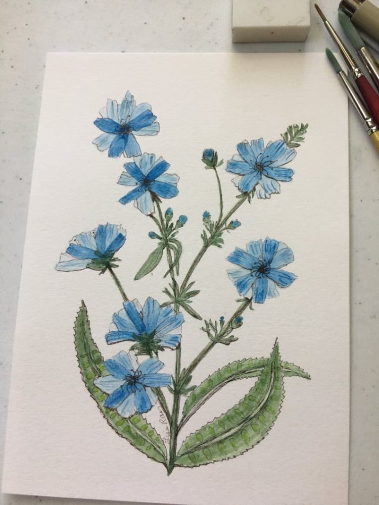 Chicory is my best-selling print! When I was painting it, I never thought so many people would love this vintage style. The flowers are layered and fragile looking. They seem to jump off the page. This is my original watercolor art piece.
